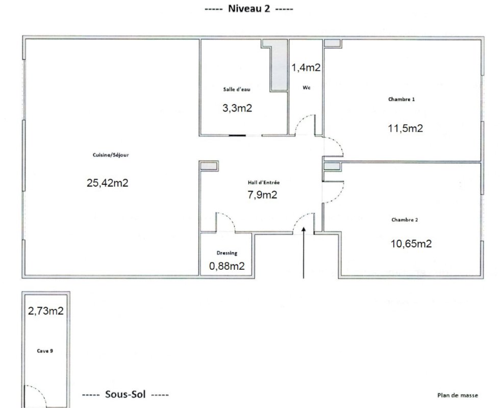 L’appartement se situe au 2ᵉ étage avec ascenseur et bénéficie d’une distribution fonctionnelle :