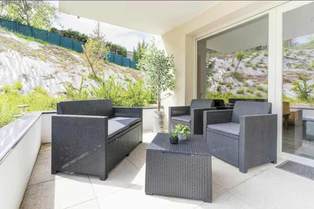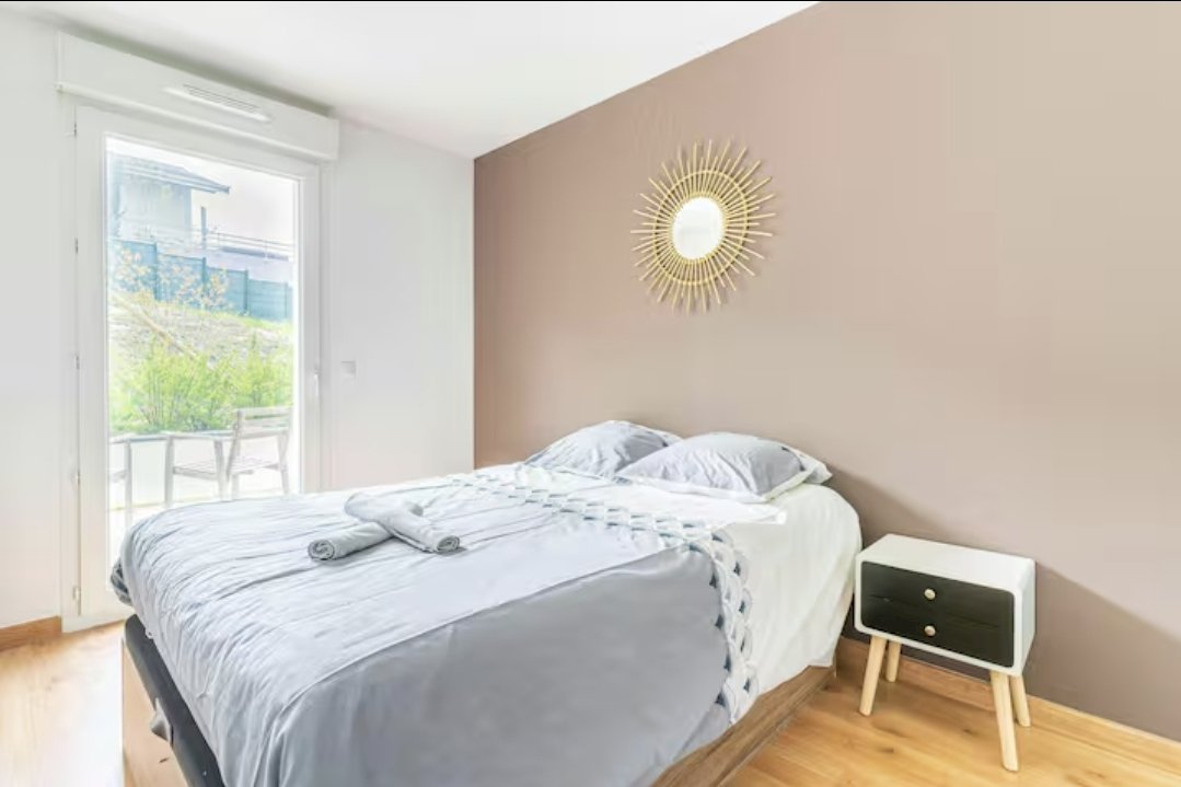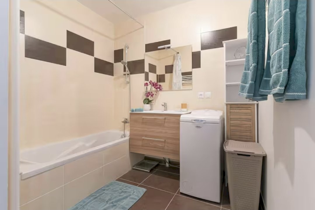 2 chambres, 1 avec dressing et l'autre avec armoire intégrée, donnant sur une terrasse de 11m². 1 SdB avec baignoire et WC séparé.