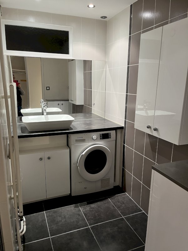 • Salle de bains avec douche à l'italienne équipée (Meubles et sèche linge).