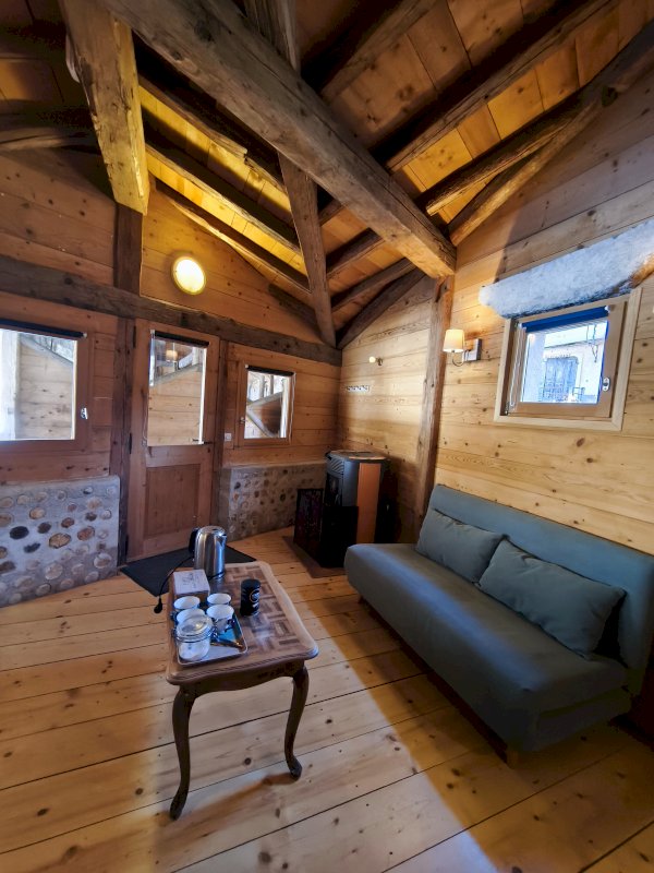 - Chambre indépendante 26 m² avec son entrés extérieure privative (WC, douche, lavabo, mezzanine 6 m², deux lits doubles, poêle à granulés)