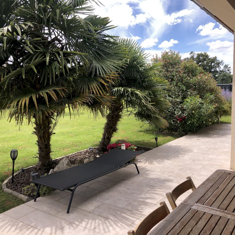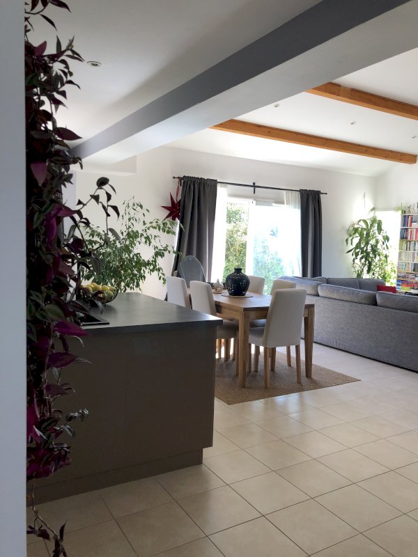 Maison contemporaine aménagée avec goût , un jardin entretenu et fleuri.