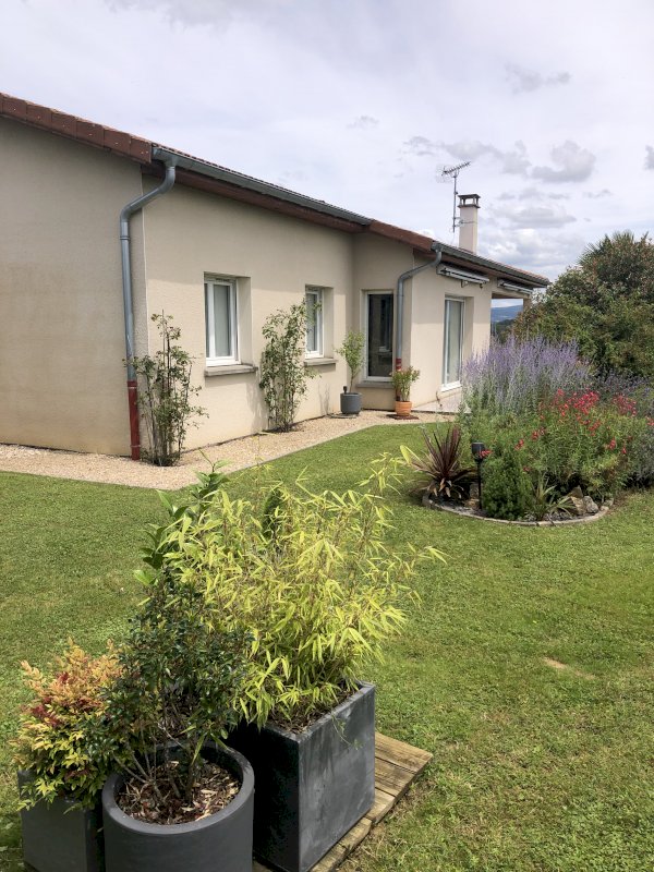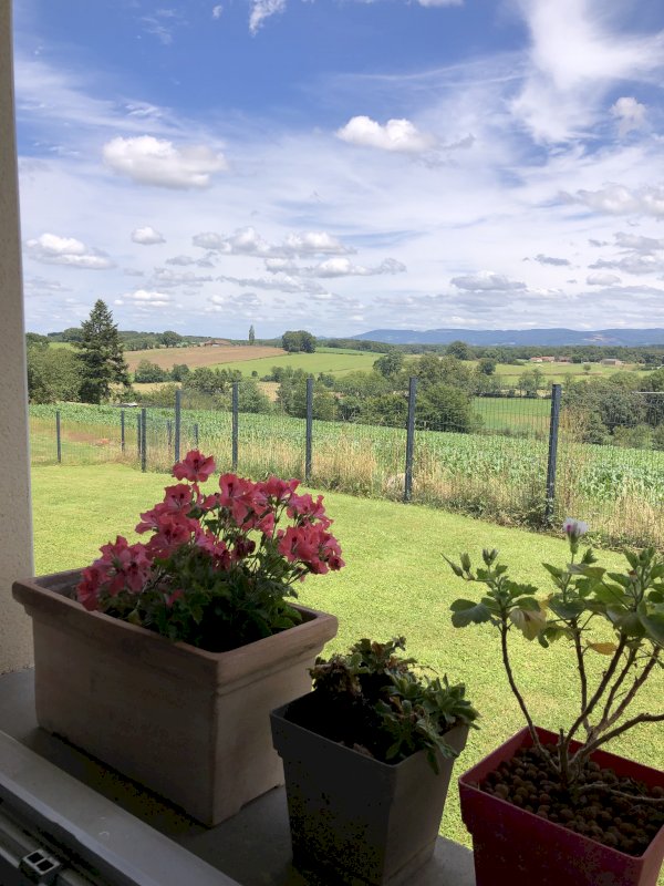 Elle est non mitoyenne, offre une magnifique vue dégagée sur les hauteurs du Revermont.