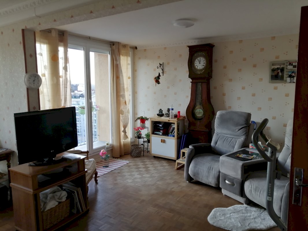 Au 10e et dernier étage d'une résidence avec interphone, sans vis à vis et très lumineux, exposition est ouest, 1 cuisine intégrée récente, 1 chambre, salle à manger, salon (possibilité de faire une 2e chambre), entrée avec grands placards, salle de bain douche, WC séparé, balcon, baies vitrées avec volets roulants électriques, loggia, cave, garage avec porte automatique, chauffage collectif au sol, clim réversible, charges mensuelles 200€, foncier 1372 €, voisinage stable et très calme, idéalement situé, proche commerces, école, piscine, stade, entrée autoroute, arrêt de tram à 20m.