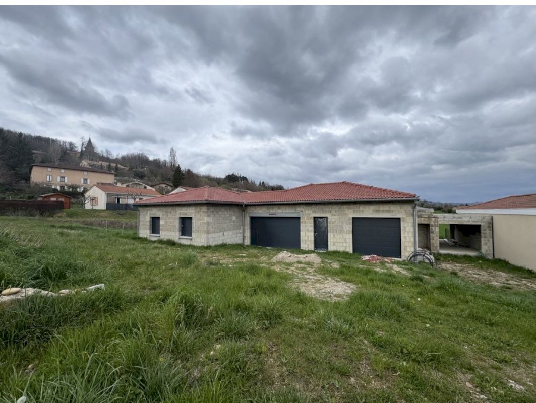 Ce projet se situe à l'extérieur du centre du village d'Hauterives, en direction du Nord Est, dans un quartier très calme bénéficiant d'une ossature déjà terminée (structure porteuse, toiture, volets électriques et porte de garage électrique et menuiseries extérieures en place).