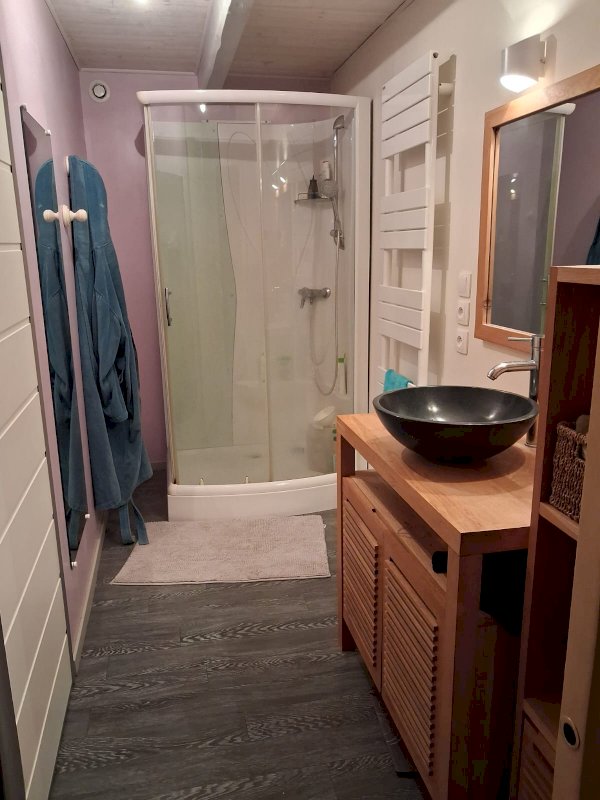 • À l’étage, un salon en mezzanine donne accès à un bureau et un couloir desservant un WC, une salle de bain avec douche ainsi que 3 chambres.