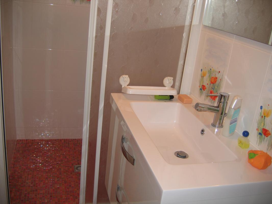 une salle d'eau avec douche a l'italienne avec fenetre, 2 chambres dont une avec placard , un wc séparé.