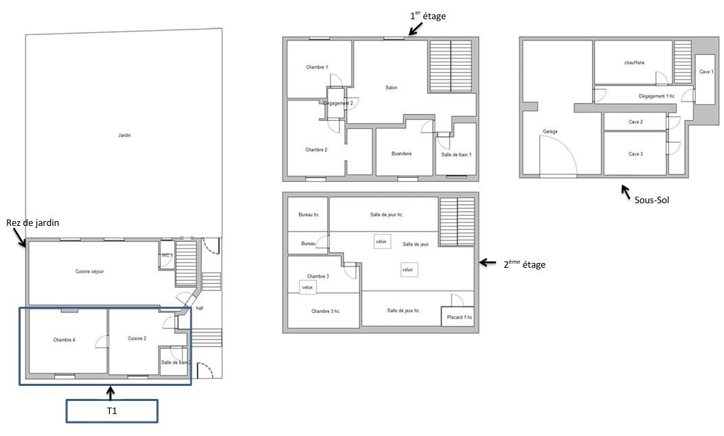 En plus la maison comprend aussi un locatif indépendant, il s'agit d'un T1 de 32m² avec une pièce principal, une cuisine, une salle de bain toilette et une cave en sous-sol. Actuellement loué, il permet d'encaisser un revenu locatif de 380€ par mois, il se loue toujours sans problème.