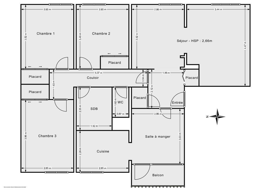 Une porte blindée ouvre sur une entrée (avec placards), un spacieux séjour double, une salle à manger donnant sur un balcon et ouverte sur une cuisine aménagée.