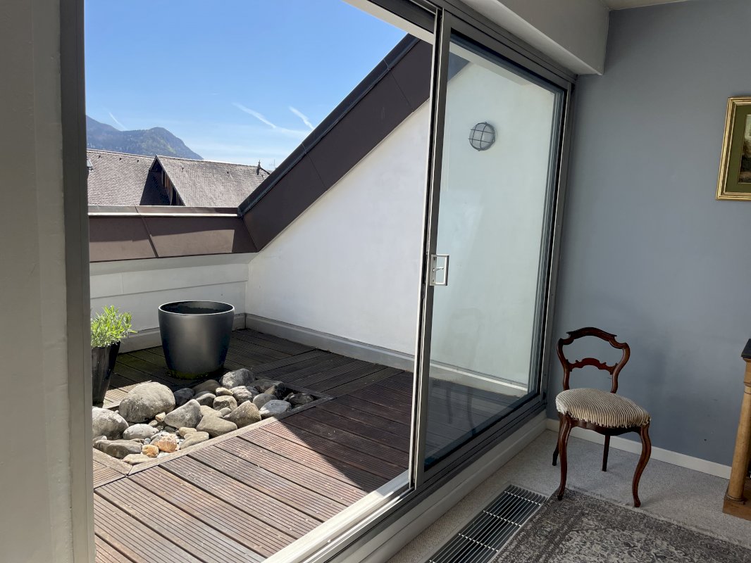 Un havre de paix au centre ville. Très bel appartement dans résidence de standing avec deux grandes terrrases vue sur le chateau d'Annecy et les montagnes.