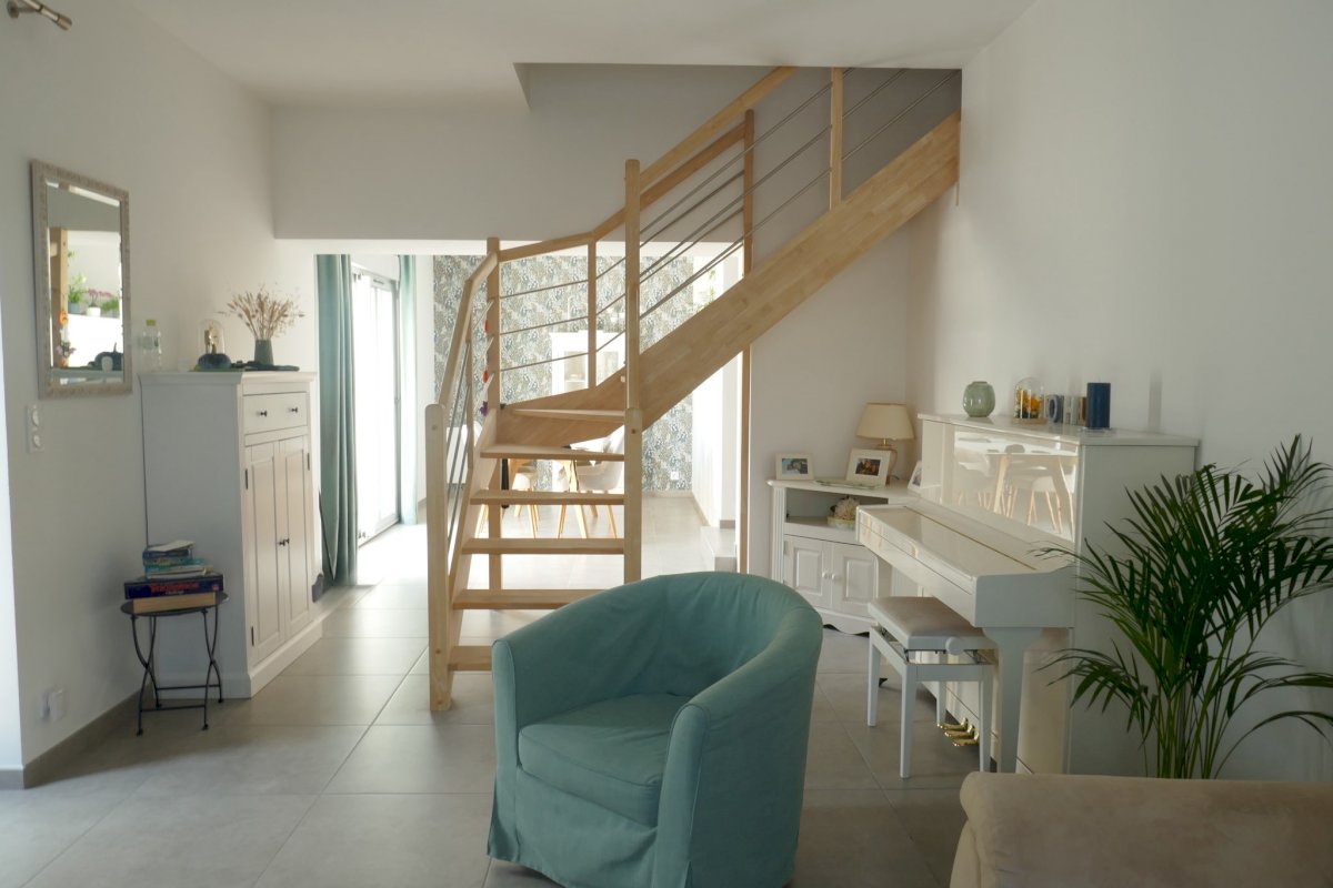 • Au rez de chaussée : salon-séjour, cuisine, toilettes, accès au garage de 17 m².