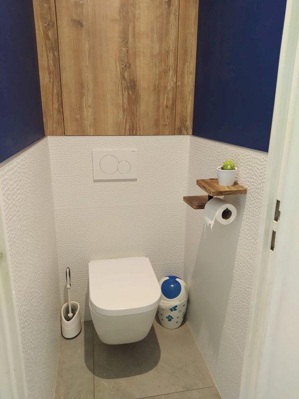 • Fin 2024 : salle d’eau (entièrement carrelée, receveur en granite, sèche-serviette, nombreux rangements) et toilette suspendue avec meuble sur mesure, suite parentale avec beau parquet et espace dressing à aménager.