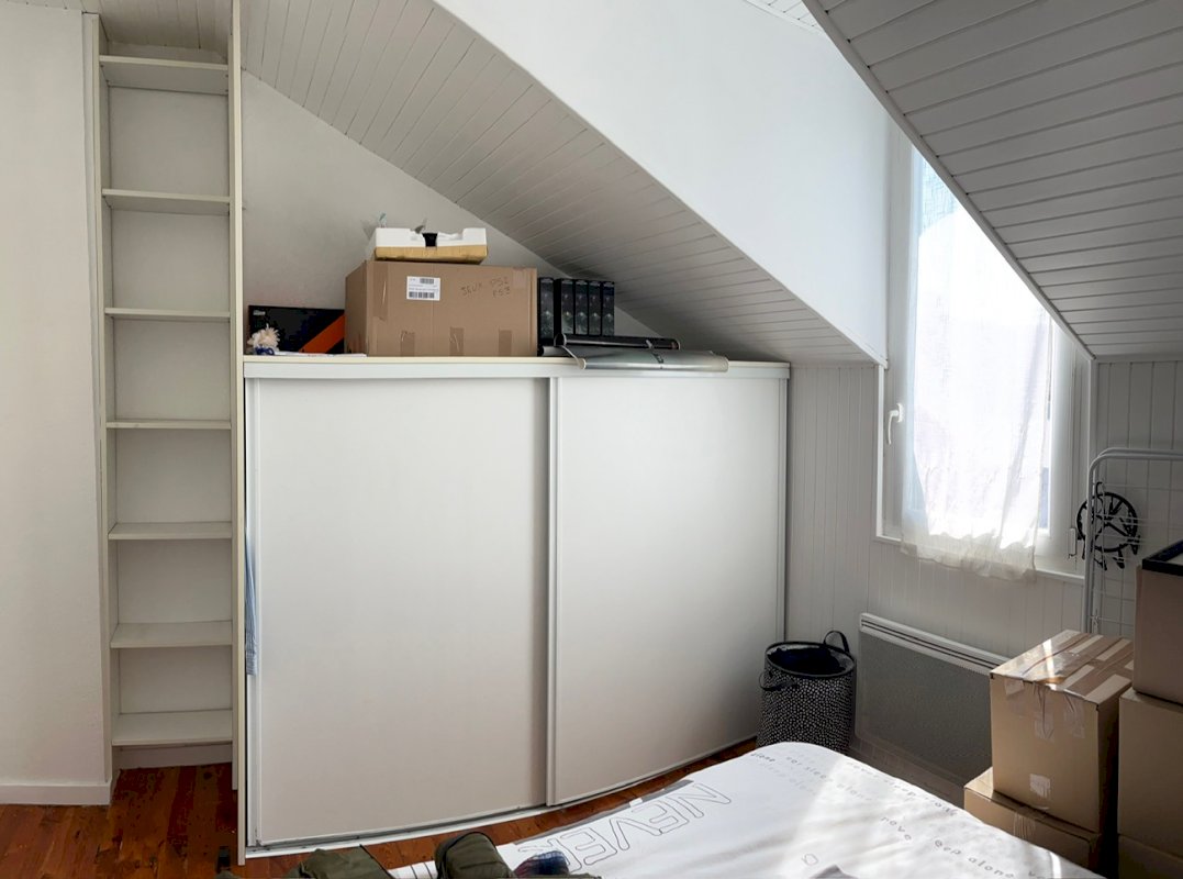 - Chambre avec grand placard-penderie et étagères.