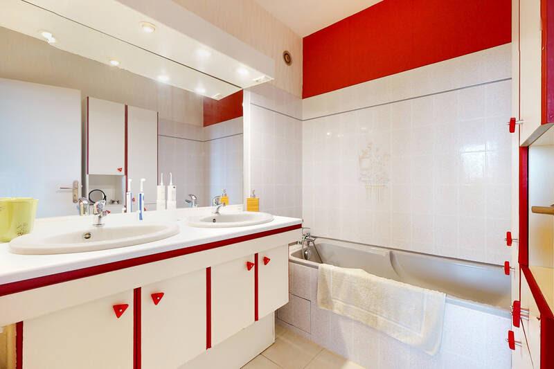 La salle de bains est équipée d'une baignoire, d'une double vasque ; un WC indépendant complète ce bien.