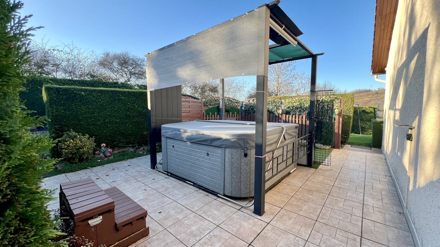 Espace détente extérieur avec spa 5 places pour vous prélasser.