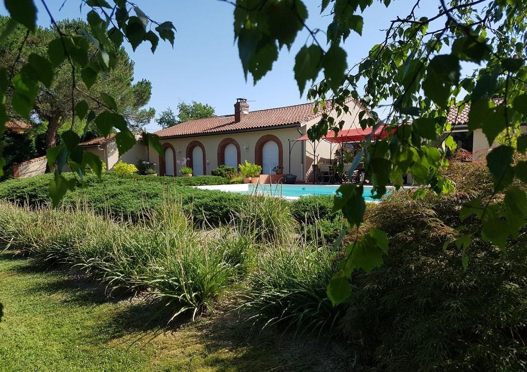 En campagne, au calme, maison de plain-pied construite en 1985 sur le modèle d'un ancien séchoir à briques, 5 pièces plus dépendances aménageables, grand jardin arboré et clos, piscine, 2 garages.