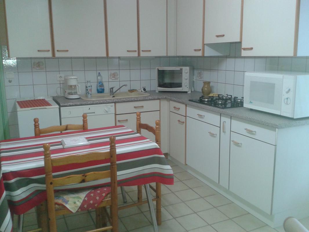 A L ETAGE : une cuisiné aménagée , un salon/ sejour/ salle a manger avec insert bois donnant sur un balcon