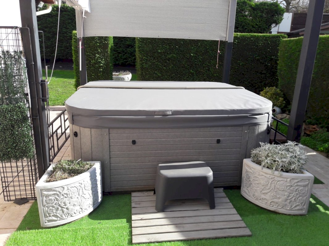 Espace détente extérieur avec spa 5 places pour vous prélasser.