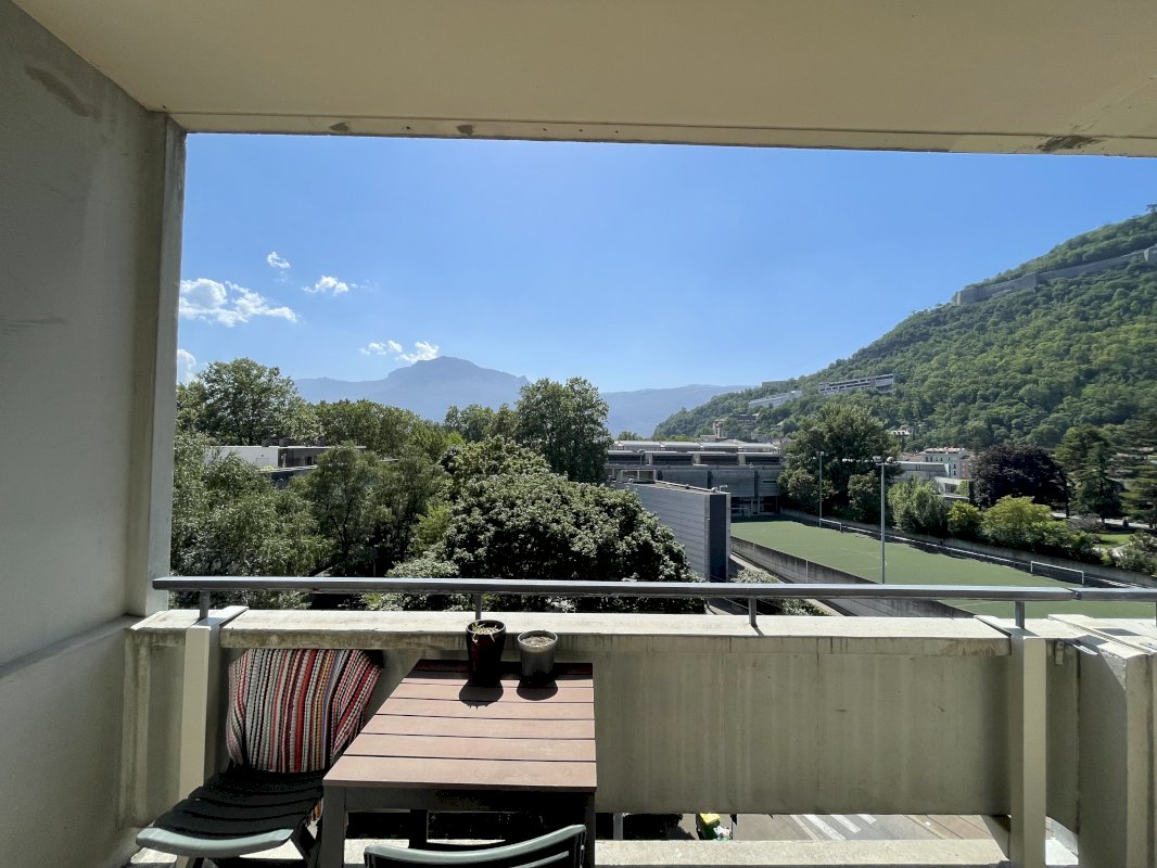 Vend Lumineux T1 Bis au 5eme etage d'un immeuble securisé, vu dégagé et agréable balcon permettant de s'installer dehors.