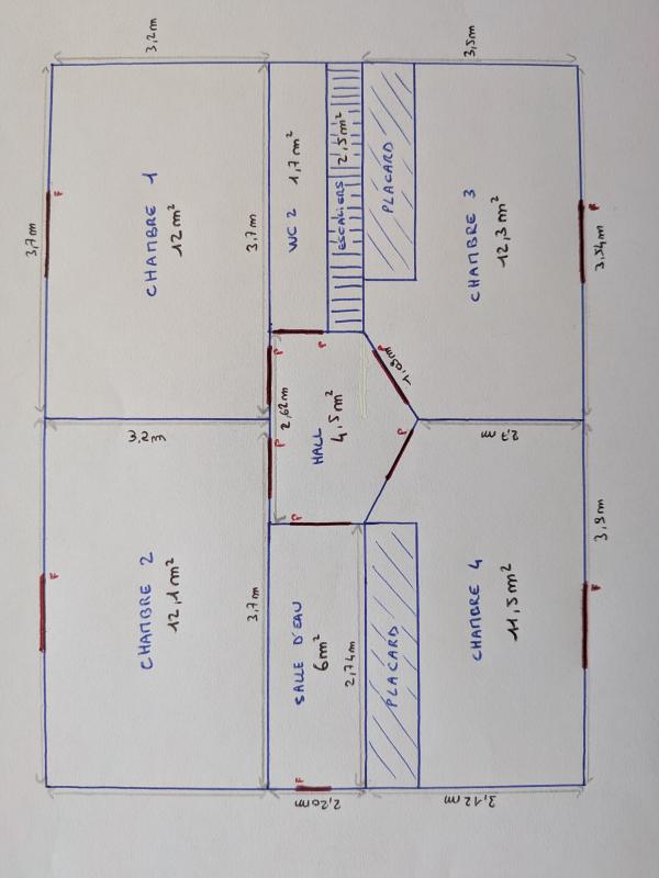 -4 chambres spacieuses de 12m² dont 2 avec placards muraux.