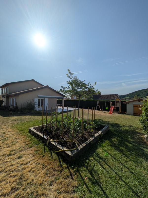 Profitez d'un jardin plat d'une belle surface de 785m², entièrement clos. Une grande terrasse de 42m² carrelée, attenante au séjour ainsi qu'à la cuisine sur laquelle vous pourrez manger à l'abri de 2 grands stores bannes électriques. Aire de jeux, potager, composte, récupérateur d'eau de pluie, abri pour robot tondeuse et belle maison en dur faisant office de cabane de jardin d'une surface de 6m² pour stocker l'intégralité de votre outillage.