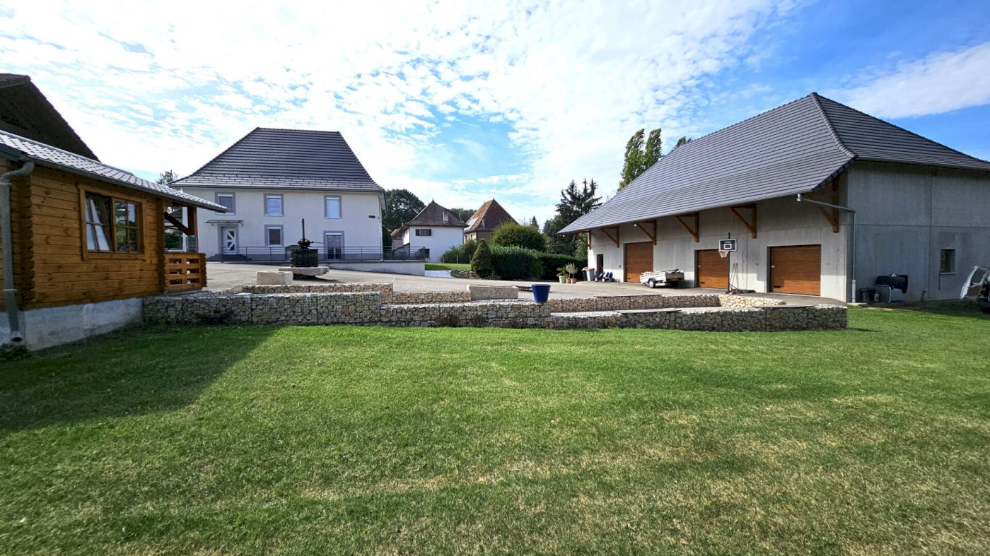 Un garage de 250 m² construit il y a 3 ans en béton banché avec une pièce de vie de 50 m² habitable isolée, chauffée et climatisée, par pompe a chaleur , cuisine... La partie atelier est équipée de 3 portes sectionnelles pro électriques et fosse. Avec à l’étage 50 m² de rangement, sol béton avec quartz couleur gris anthracite. Ce bâtiment peut être mis à la location pour une somme de 1500€/mois par les nouveaux propriétaires car il est indépendant de la propriété.