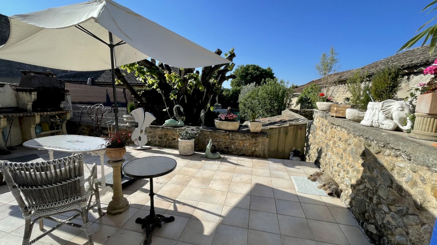 Cette spacieuse maison villageoise orientée plein sud offre un espace vie de 80m² (cuisine intégrée) donnant sur une terrasse de 25m² ainsi qu'une chambre et sa douche attenante donnant aussi sur la terrasse.