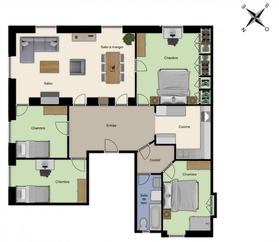 - 4 chambres dont 2 avec placard (1 avec douche)