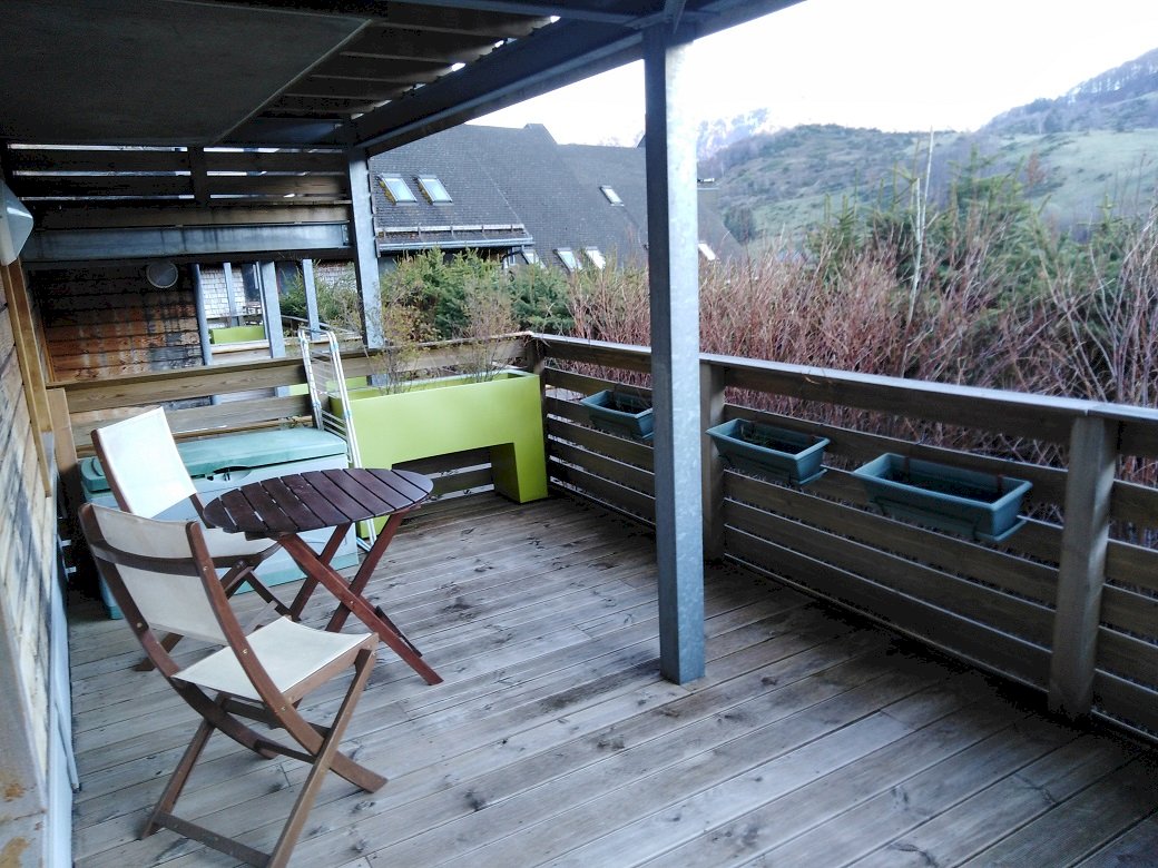 - Une grande terrasse (la plus grande de la copropriété) avec vue exceptionnelle sur le Puy Jumel et sur laquelle on peut manger jusqu'à 6 personnes.