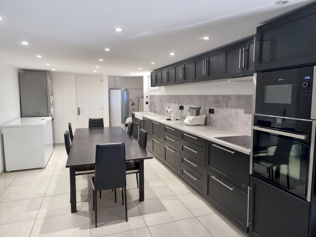 • Au rez-de-chaussée, un grand espace jour avec cuisine équipée / salon / salle à manger de 45 m² ouvert. Une toilette avec lave-mains. Un bureau de 13 m² et un cellier de 11 m². Toutes les pièces sont chauffées et climatisées par pompe à chaleur air/air réversible.