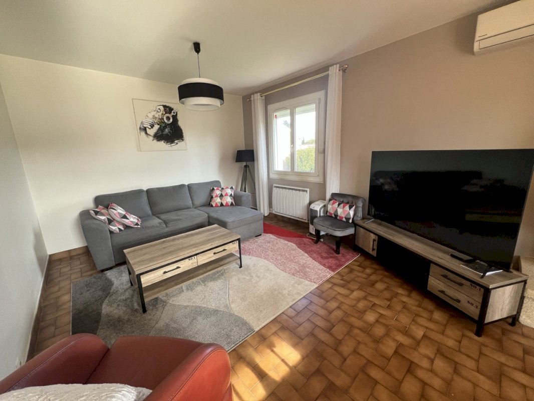 Prestations : Menuiseries double vitrage, cheminée, chauffage individuel électrique et climatisation.