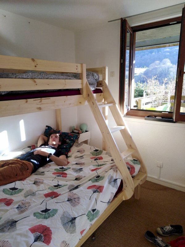- Une chambre avec lit superposé 3 places (2 en bas, 1 en haut, voir photo) + un placard intégré