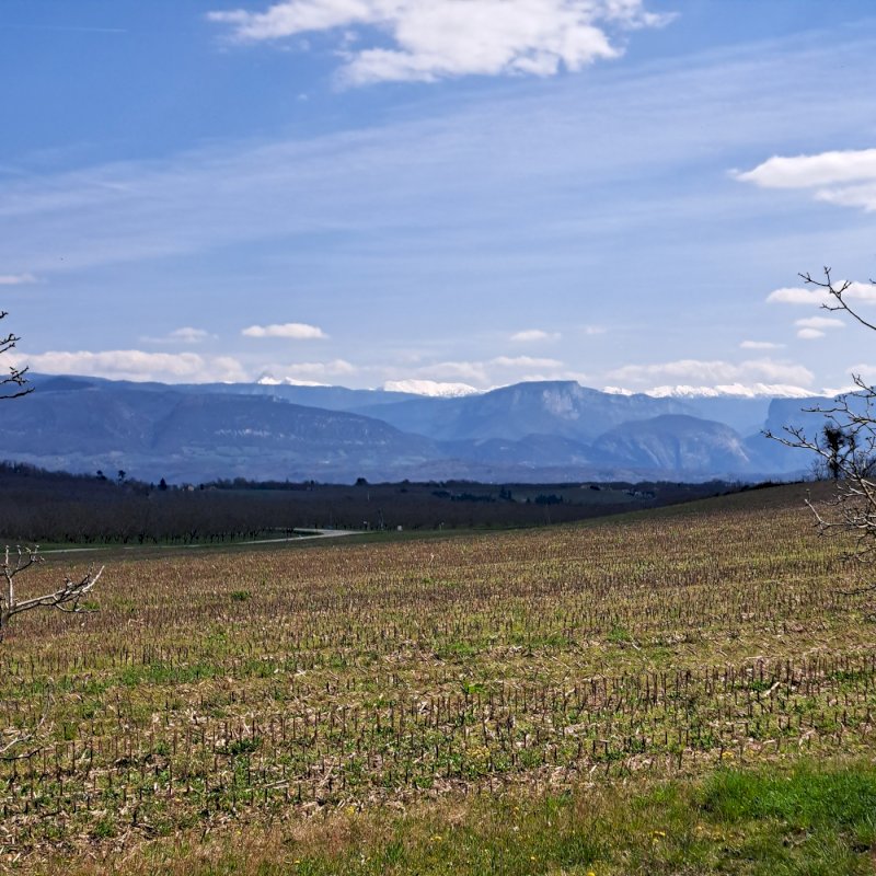 Cette maison est implantée sur un très beau terrain plat de 2700 m², offrant un cadre verdoyant avec vue sur le Vercors, de nombreux arbres fruitiers (pommiers, cerisier, poiriers, figuiers, pruniers, ..) et de nombreuses possibilités d'aménagement pour profiter pleinement des extérieurs.