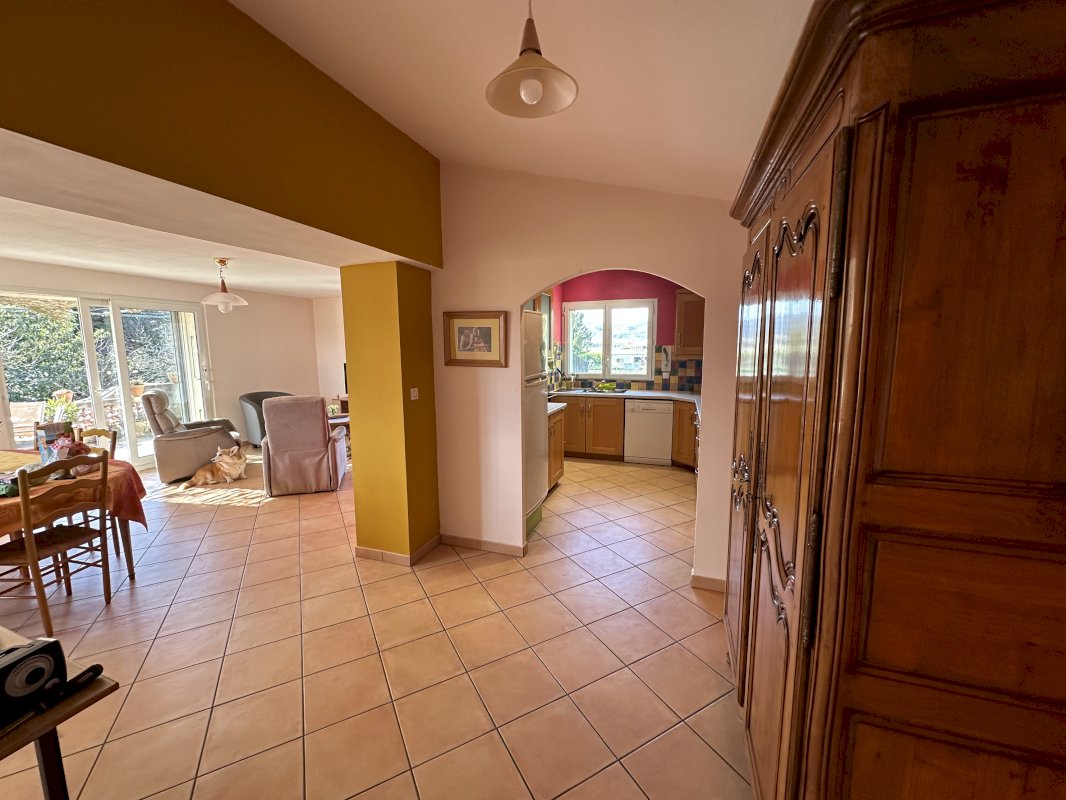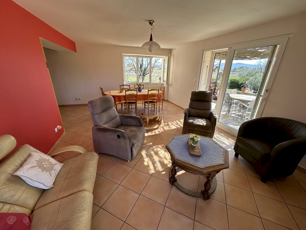 Elle offre une surface habitable de 145m², sur 2 niveaux. Cuisine équipée donnant sur une grande pièce de vie lumineuse ouverte sur une terrasse de 60 m² orientée Sud/Ouest. La vue y est imprenable sur le massif du Vercors et les monts d'Ardèche.
