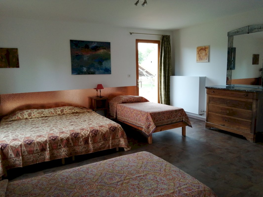 - 1 Gîte capacité 14/15 places (adapté pour les personnes en situation de handicap) : salon, salle à manger/cuisine, 4 grandes chambres avec salle d'eau et WC, terrasse couverte.