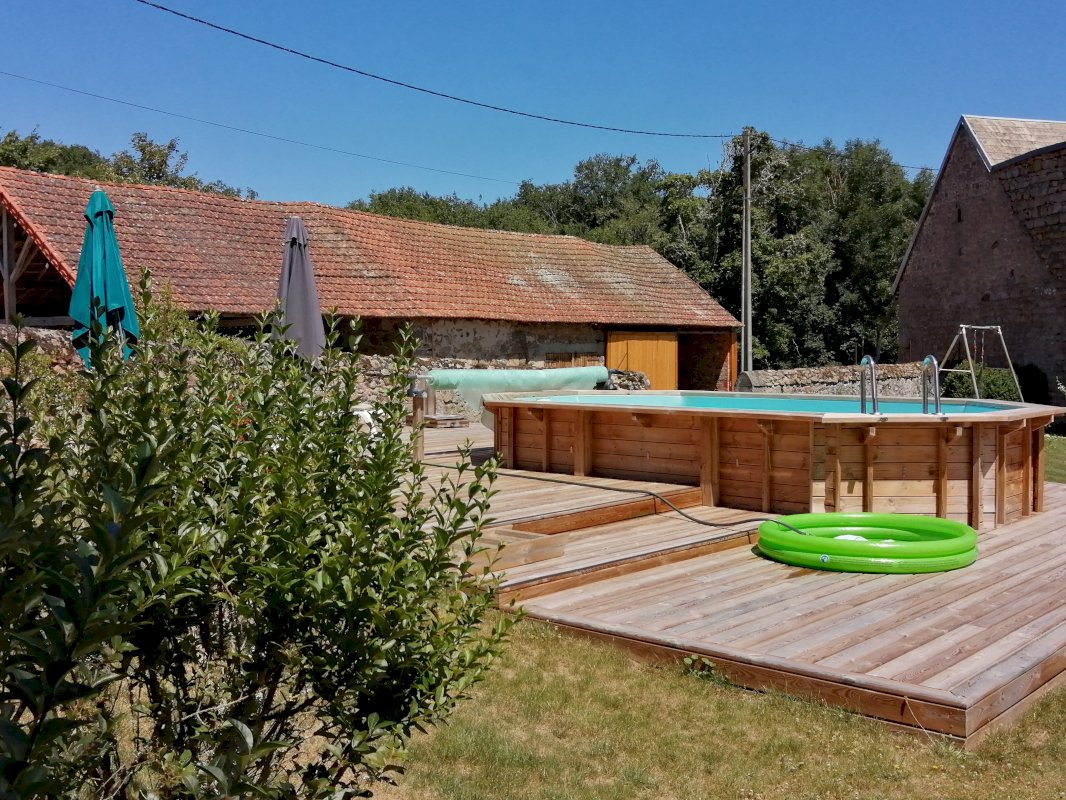 - Piscine en bois hors sol avec terrasse.