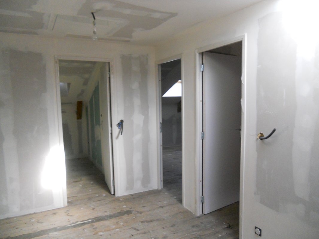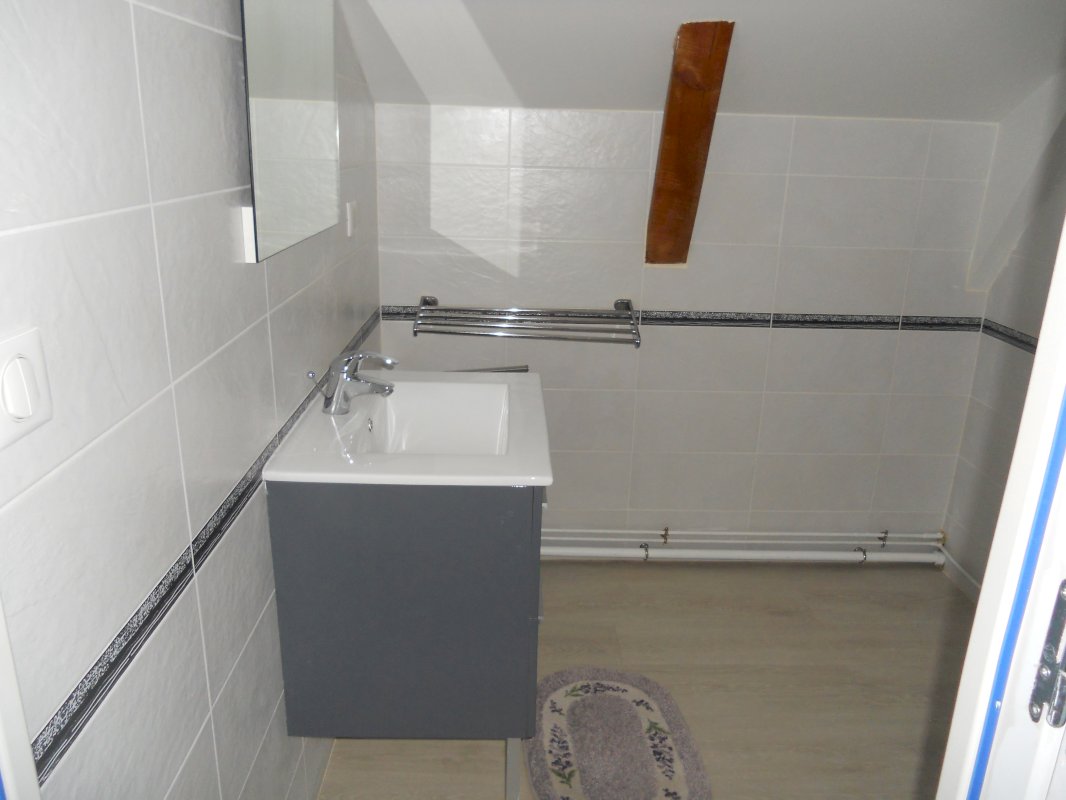 - d'un espace (48,5m²) à finir de rénover (espaces cuisine, 2 chambres, salle de douche/WC), 3 velux + fenêtres.