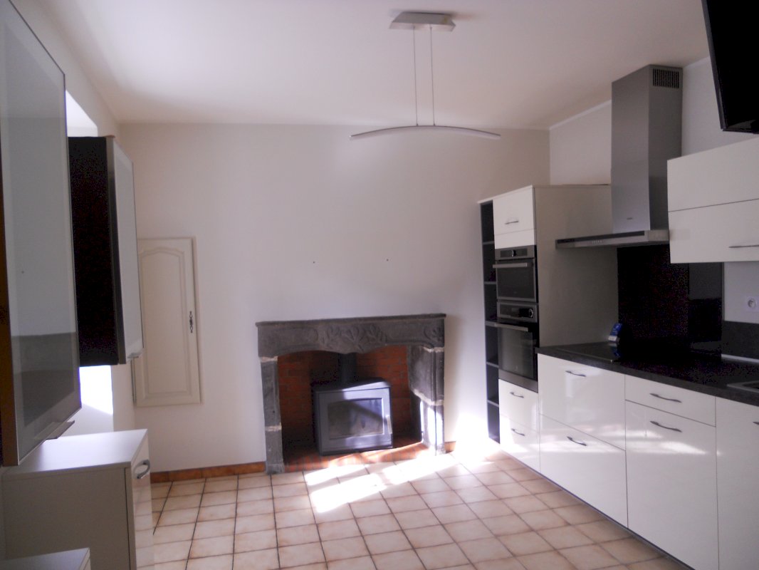 - Une cuisine rénovée équipée (14,6m²), avec cheminée et poêle à bois.
