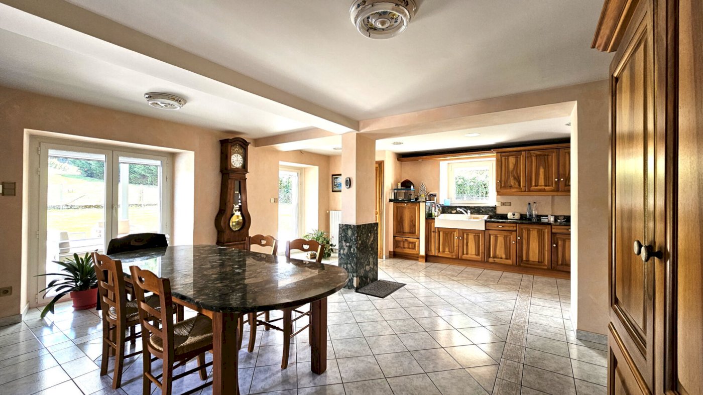 Un garage de 250 m² construit il y a 3 ans en béton banché avec une pièce de vie de 50 m² habitable isolée, chauffée et climatisée, par pompe a chaleur , cuisine... La partie atelier est équipée de 3 portes sectionnelles pro électriques et fosse. Avec à l’étage 50 m² de rangement, sol béton avec quartz couleur gris anthracite. Ce bâtiment peut être mis à la location pour une somme de 1500€/mois par les nouveaux propriétaires car il est indépendant de la propriété.