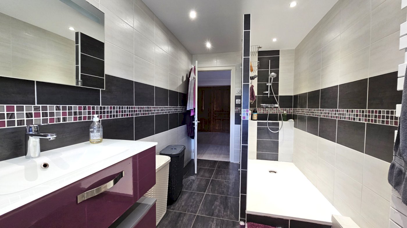 La maison intégralement rénovée avec des prestations de qualité telle que les menuiseries aluminium Technal, double vitrage, parfois oscillo battantes, avec des volets roulants aluminium isolés électriques, Toutes les ouvertures sauf la porte d’entrée sont équipées de moustiquaires, Commande centrale. Façade, toiture, charpente, terrasse, balustrade, pompe a chaleur Daikin, tout est neuf.