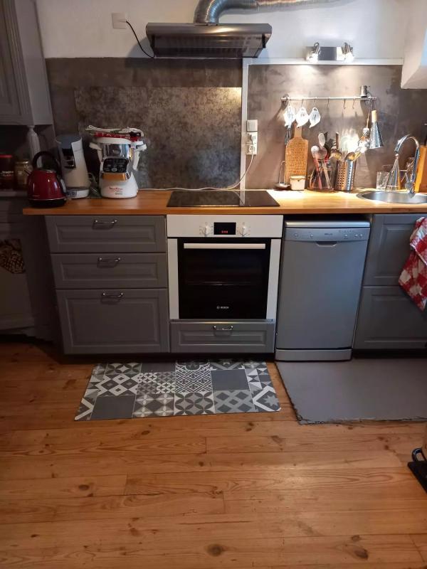 • Au rdc, une cuisine équipée parquet bois, une salle à manger, un salon cosy et le jardinet.